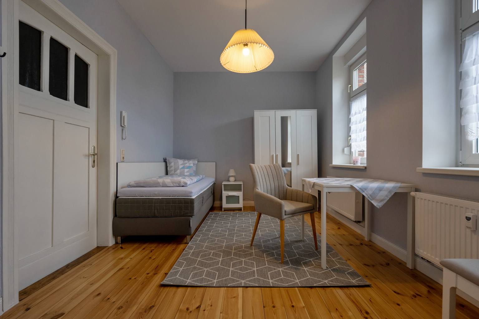 Sie sind Rentner und haben nach wie vor den Wunsch nach regem gesellschaftlichen Austausch. Die Kinder sind weggezogen und kommen nur noch selten zu Besuch. Finden Sie hier eine kleine neue Familie! In dieser liebevoll sanierten Villa wohnen Sie in einer Seniorenwohngemeinschaft von jeweils 3 Personen auf einer Etage. Die 2 Wohneinheiten sind je ca. 125 m² groß und befinden sich im Erdgeschoß und im Obergeschoß. Ihr eigenes Zimmer (ca. 20-25 m²) mit zugehörigem barrierefreien Bad inkl. ebenerdiger Dusche können Sie nach Belieben einrichten. In jeder Wohnung befinden sich außerdem eine geräumige und modern ausgestattete Küche sowie ein Hauswirtschaftsraum. Beide Räume können gemeinsam genutzt werden. Auf Anfrage ist das Mitbringen von Haustieren ebenfalls möglich. Der großzügig angelegte Garten lädt zum Bewirtschaften und Verweilen ein. Ein gemeinsamer überdachter Freisitz mit Blick in den Garten ergänzt das Angebot.